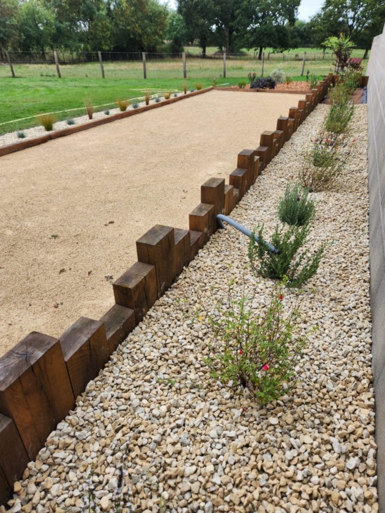 Nous préparons, nivelons et aménageons votre terrain pour créer un espace de pétanque parfaitement intégré à votre jardin.